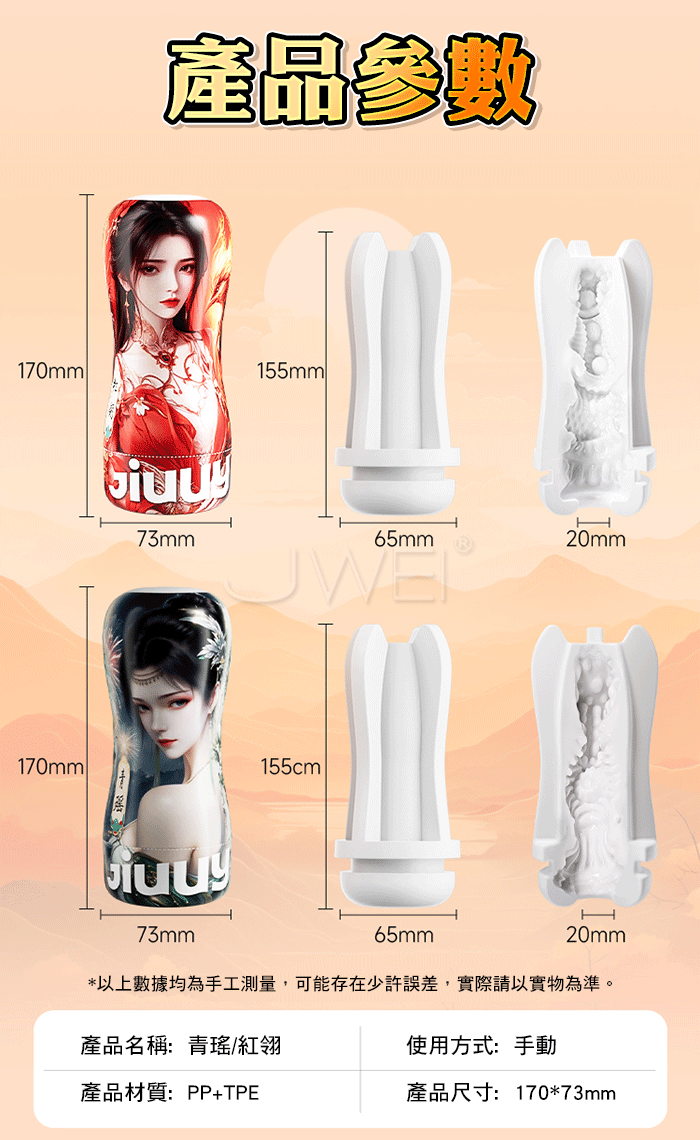 雙妹並蒂,幻夢成真,與你共赴愛之修行 青瑤紅翎 千年之約 收腰設計真空吮吸,強烈的貼合與壓迫感 科學收腰結構,負壓吸包更緊密,形成「真空吮吸」快感 產品規格 ■尺寸:大小詳如圖片標示 ■材質:TPE+PP