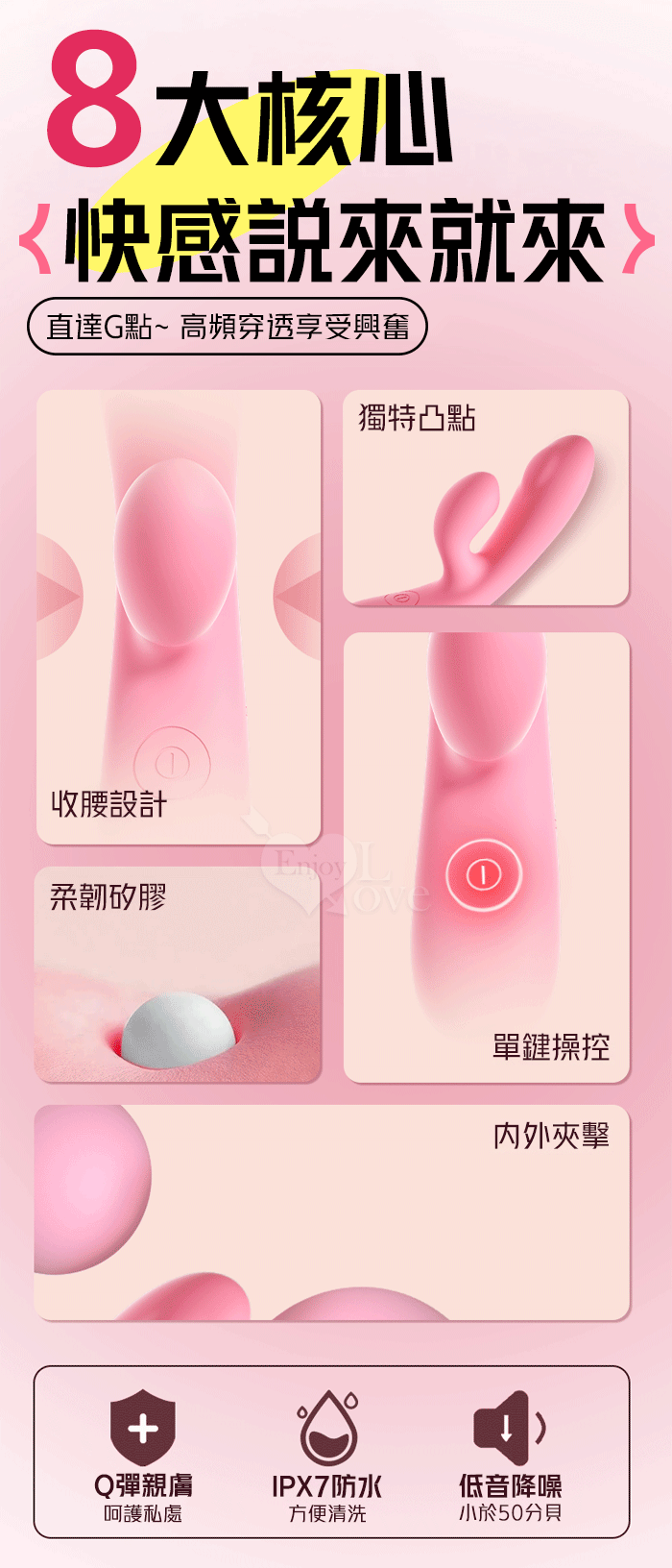 LILO 來樂.DOUBLE 露娜 ‧ 內外雙震10頻撩撥入體內外刺激衝撞G點按摩棒﹝親膚矽膠/獨特凸點/收腰設計/15微翹角度﹞洋紅