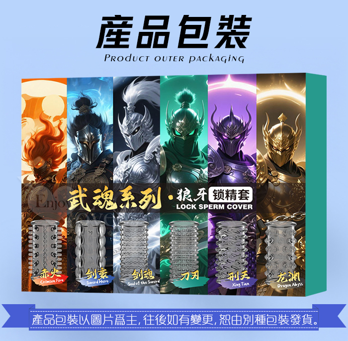 | 武魂系列.劍魂六組合套~顆粒入珠肉刺環繞鎖精延時陰莖加強環~成人性趣輔助用品-6款體驗裝﹝透明黑﹞