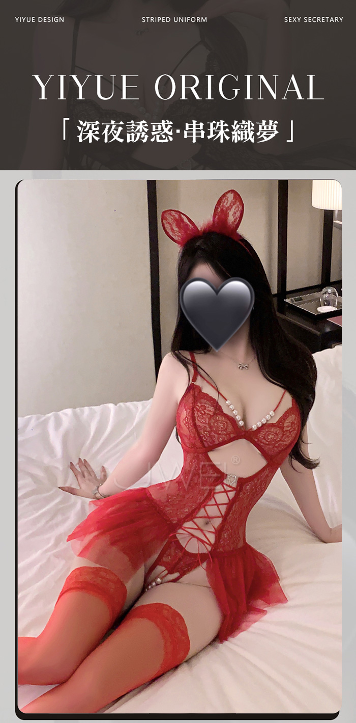 ►您現在的位置:首頁>串珠織夢.深V珍珠飾胸蕾絲繫帶花邊裙擺開襠連體衣【酒紅】
