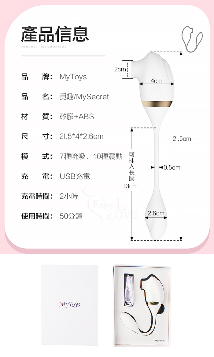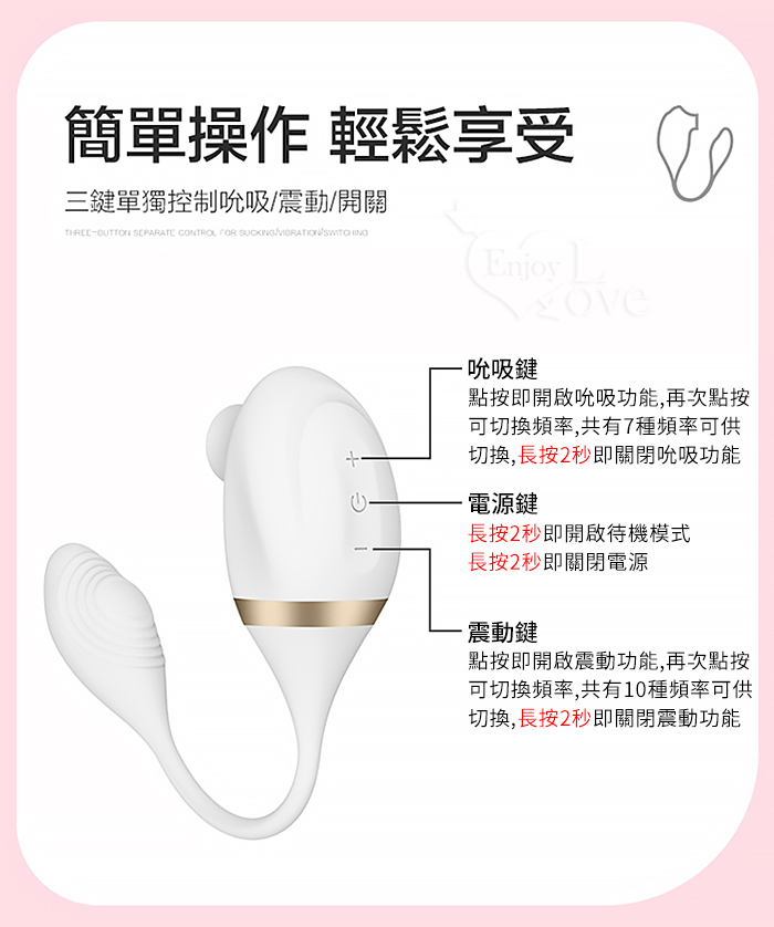 • 7種吮吸模式, 10種震動模式