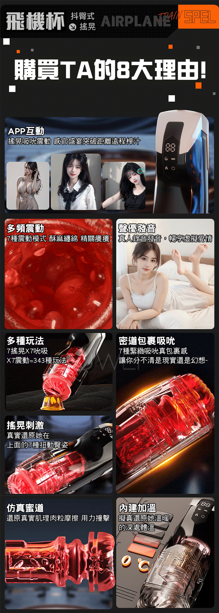 | 騎士.7x7x7段 搖晃吮吸激震 APP遠控智能加溫飛機杯