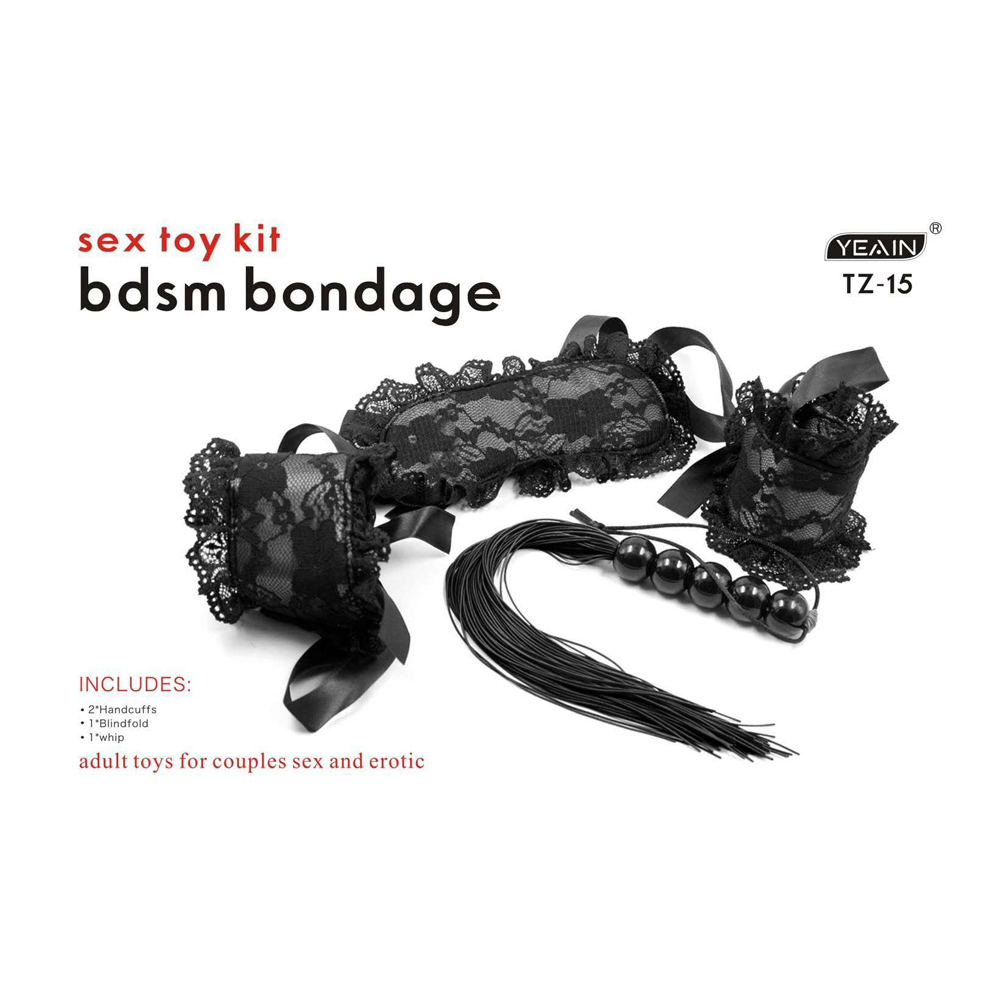 ►您現在的位置:首頁>☆限量出清☆SM情趣調情組合黑色情慾蕾絲三件套(眼罩+手銬+鞭子)