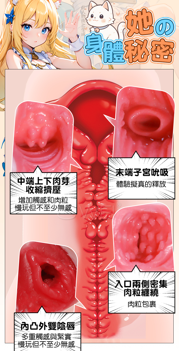 | 貓寶妹妹. 可愛軟萌雙層陰唇 擬真吮吸子宮腔 果凍感雙色自慰套