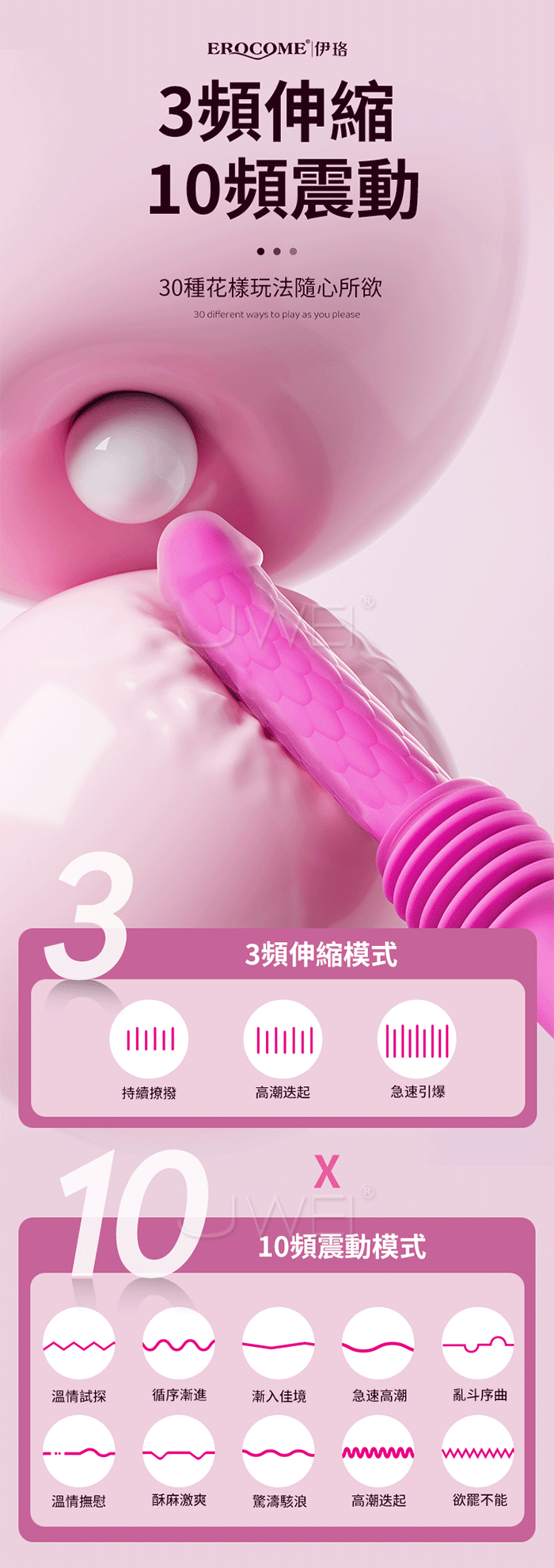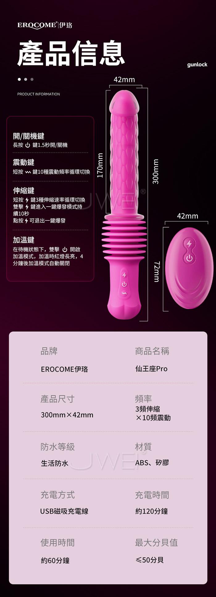 ■功能:3頻伸縮、10頻震動、、無線遙控、吸盤底座、加溫