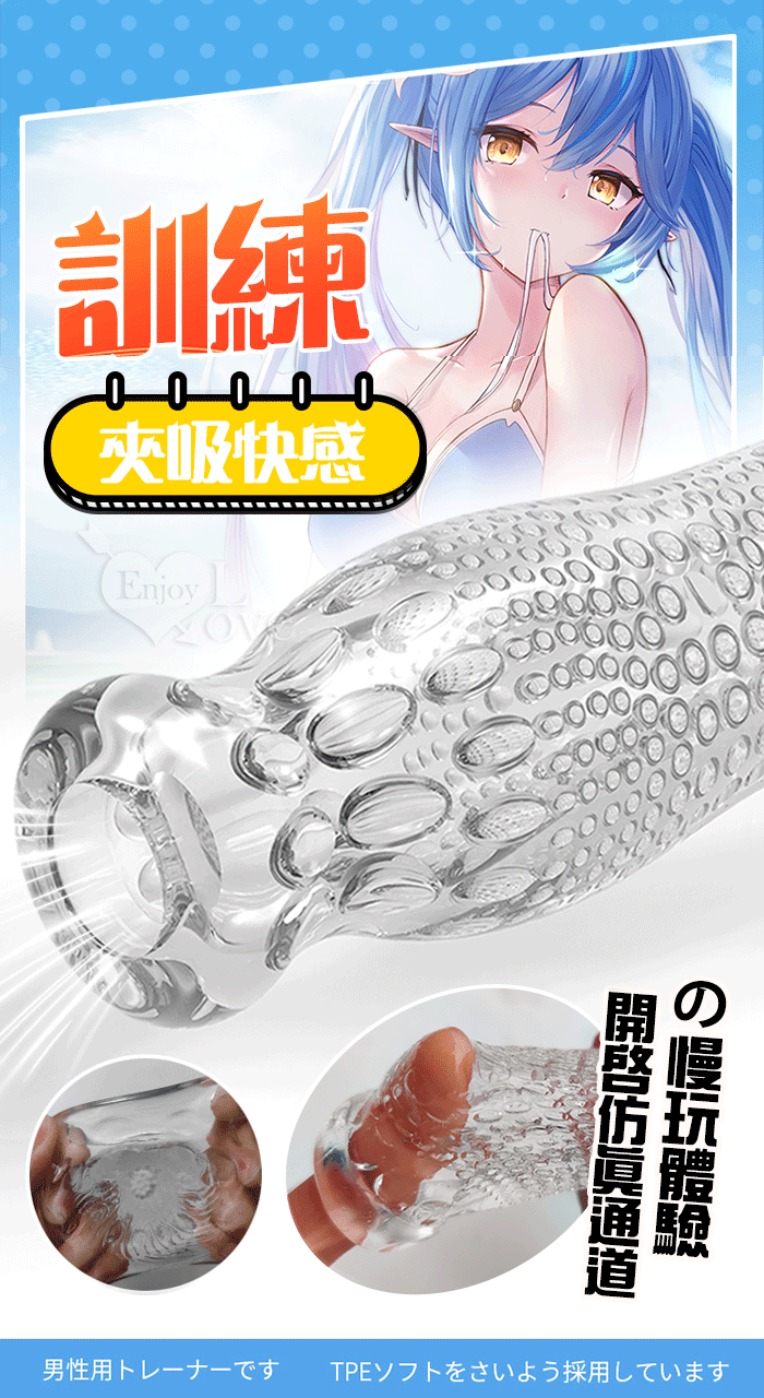 ►您現在的位置:首頁>取悅 ‧ 海鹽幻想~夾吸包裹十足絲滑~活塞慢玩鍛練自慰器﹝大顆粒刺激﹞