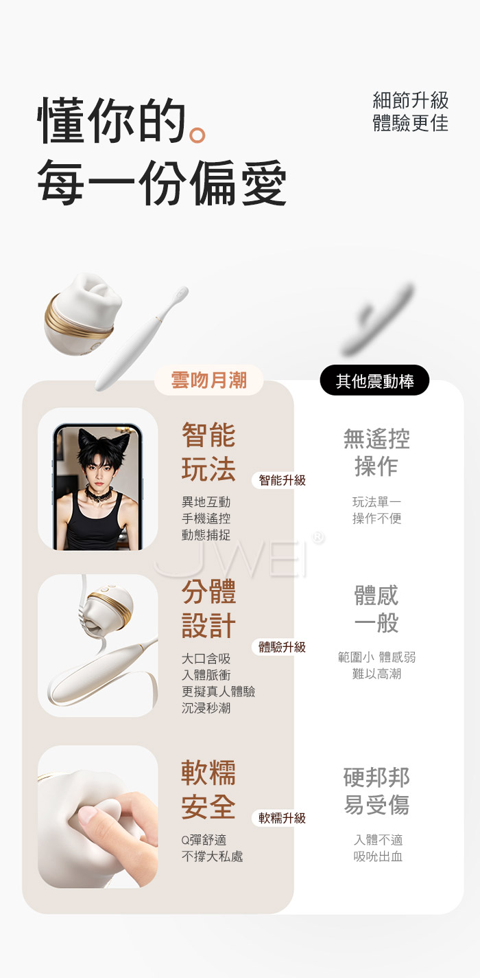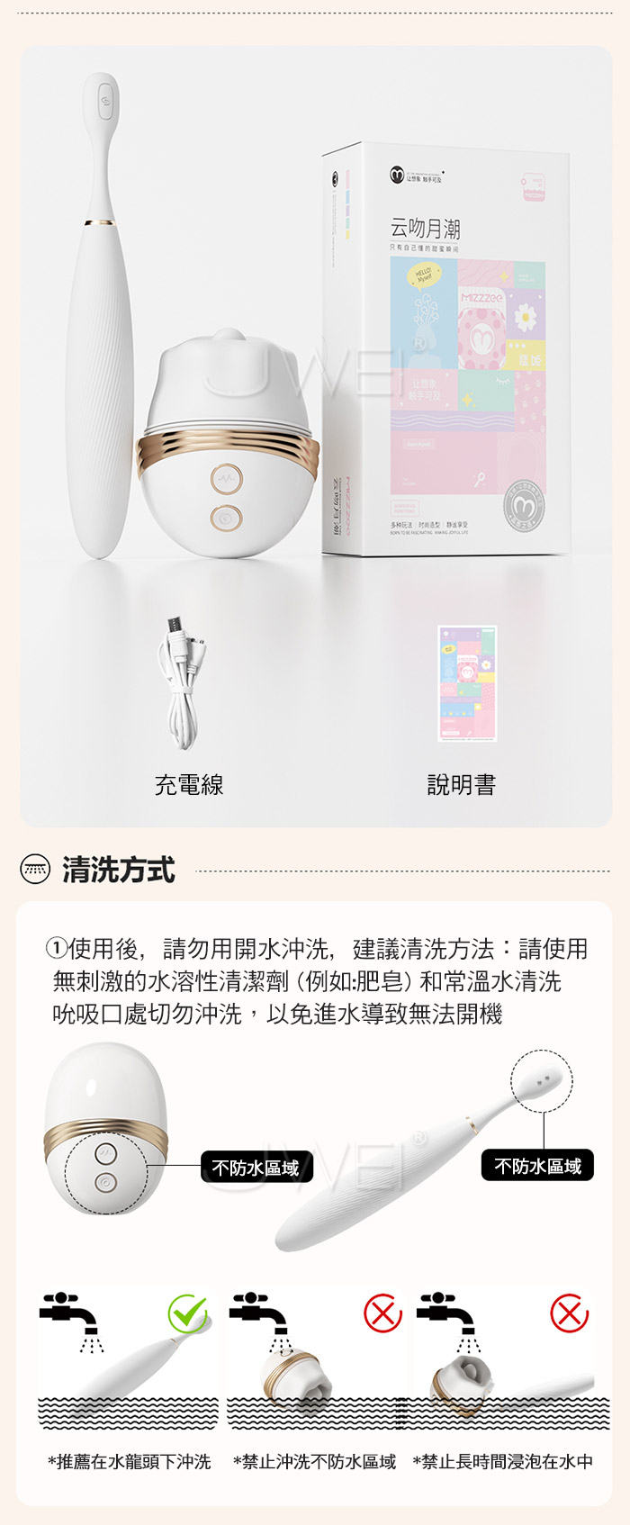 | 謎姬 MizzZee.雲吻月潮.10頻脈衝強震+10頻吮愛舌吻 APP遠控加溫二合一雙驅按摩器