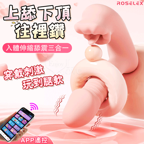 ROSELEX 上舔下頂 入體伸縮舔震三合一 10頻雙馬達貼合穿戴按摩器 - 可手機APP遙控﹝具兩種操控模式﹞粉